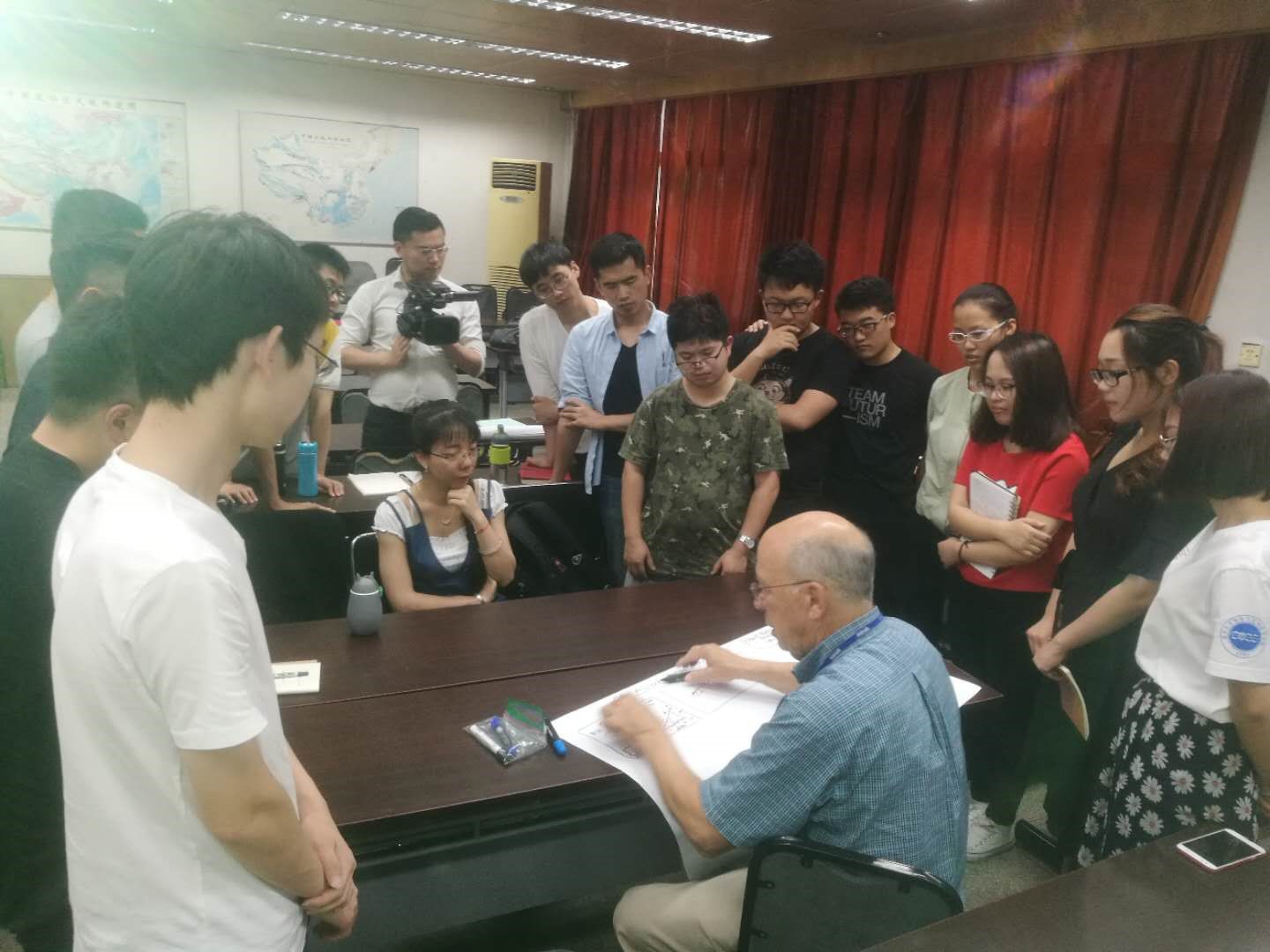 图2. George H.Davis教授课后与参加课程学习的部分同学开展学术讨论与交流(5月19日课后)