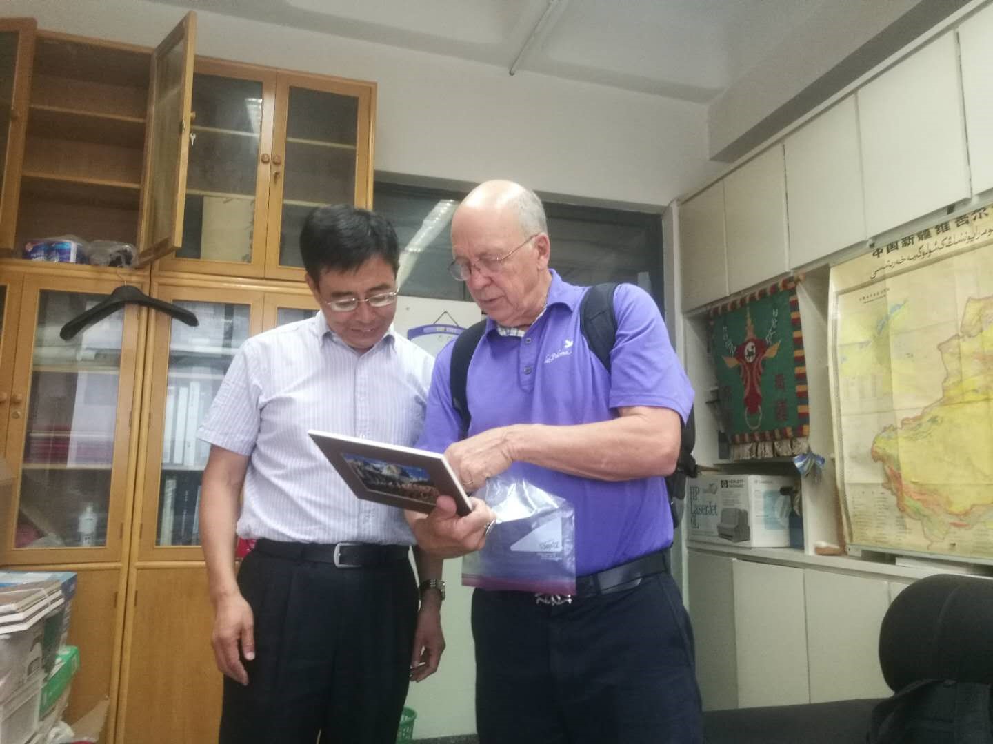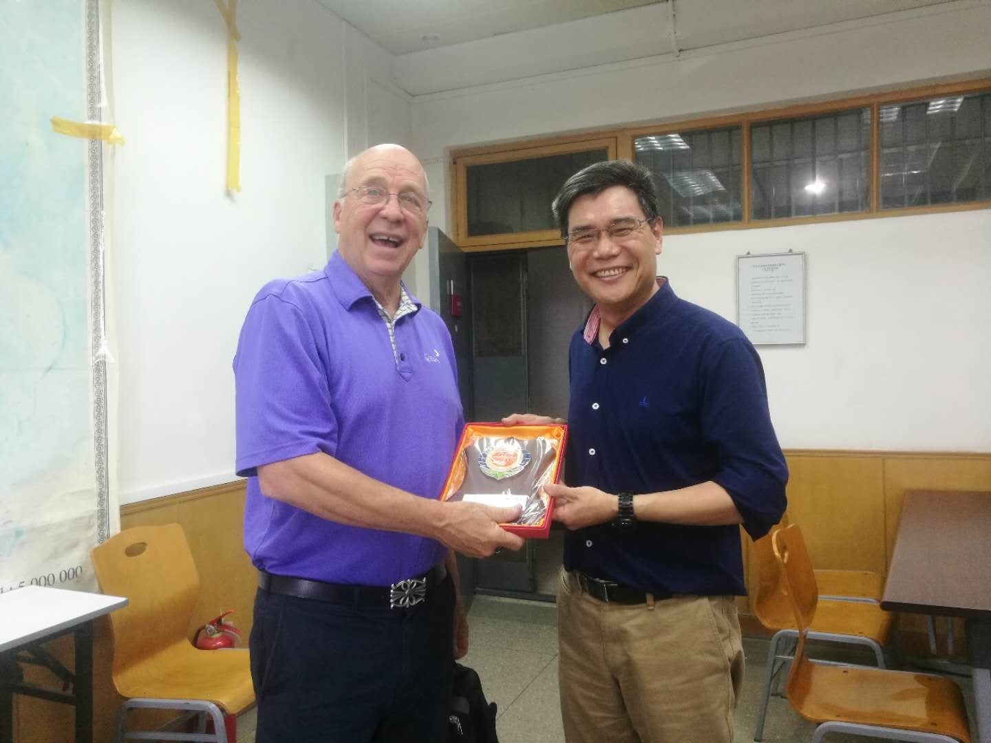 图13. George H.Davis教授与地质系构造教研室主任韩宝福教授交流学术(5月23日课后)
