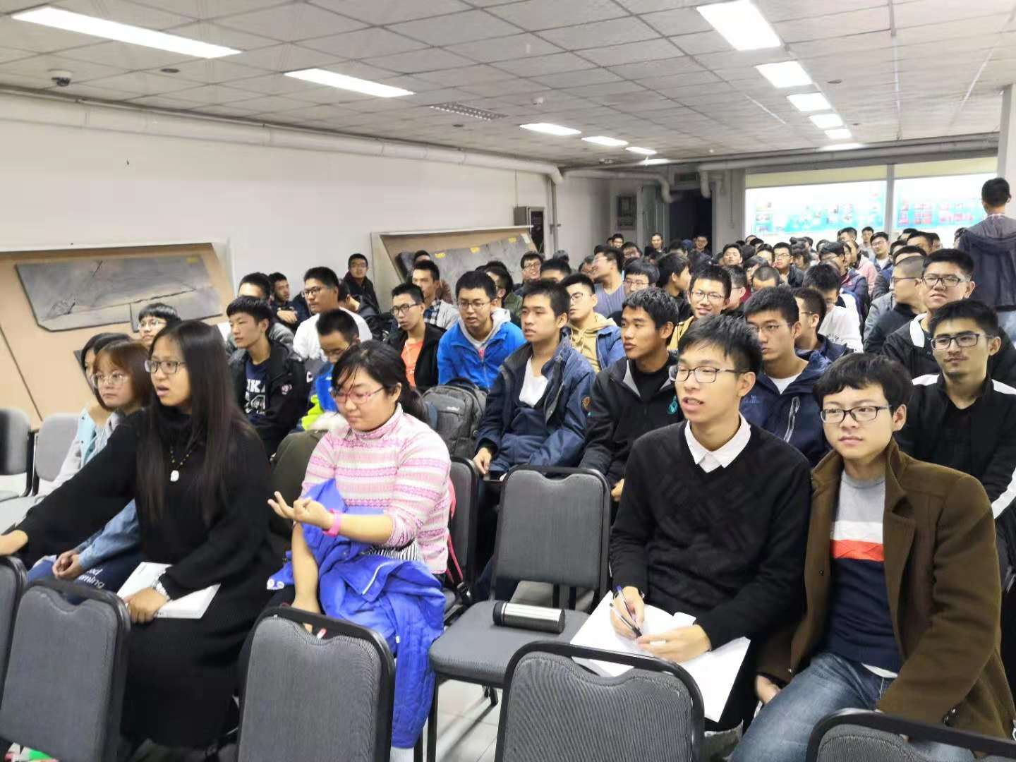 学生们的青春风采。同学们对学院2017年斩获优秀视频奖的作品格外感兴趣,现场气氛十分活跃。