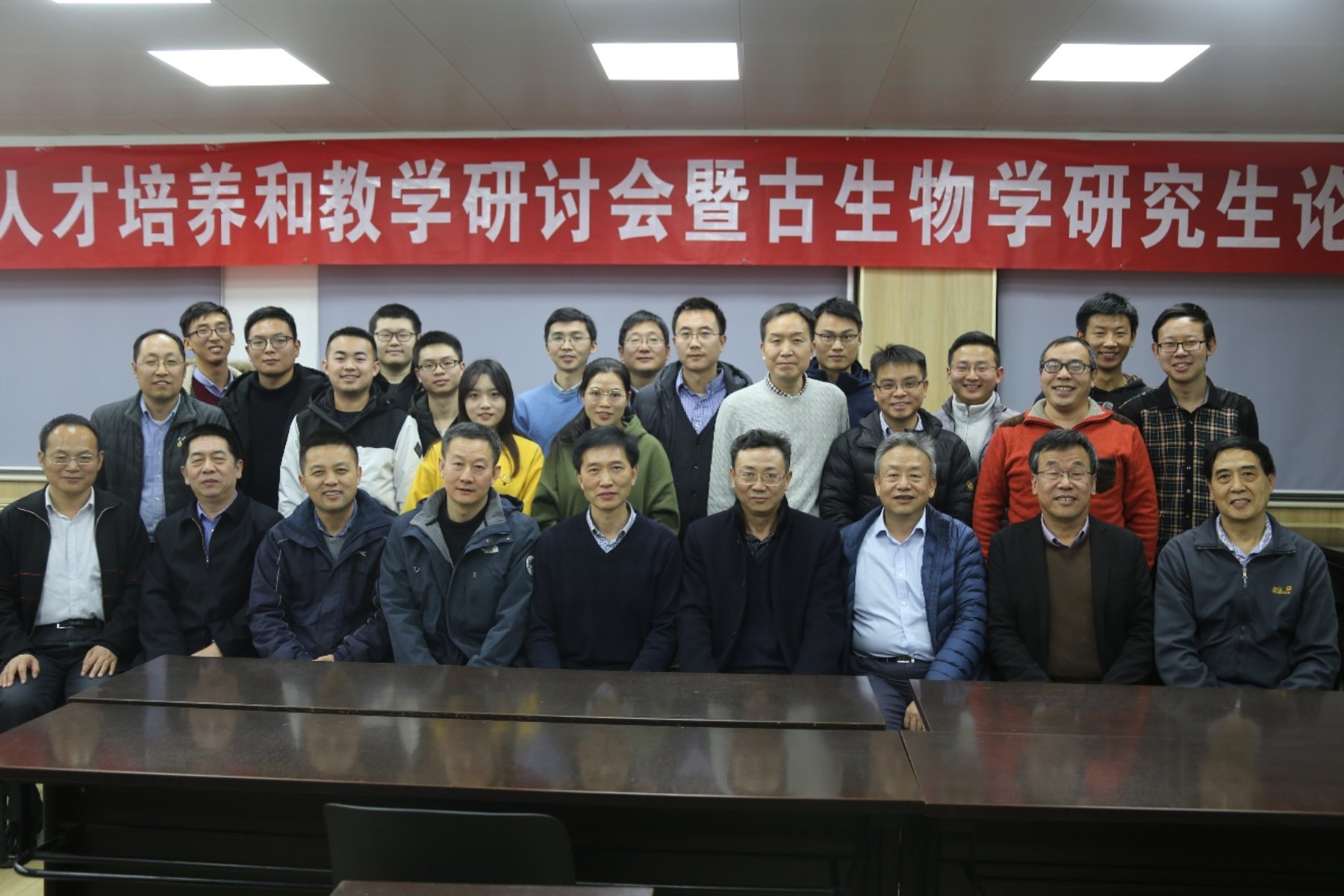 史前生命与环境科学研究所所长江大勇教授、孙元林教授、刘建波教授、马学平教授、孙作玉副教授、黄宝琦副教授、薛进庄副教授和沈冰研究员。40余名学生代表分别来自上述单位。