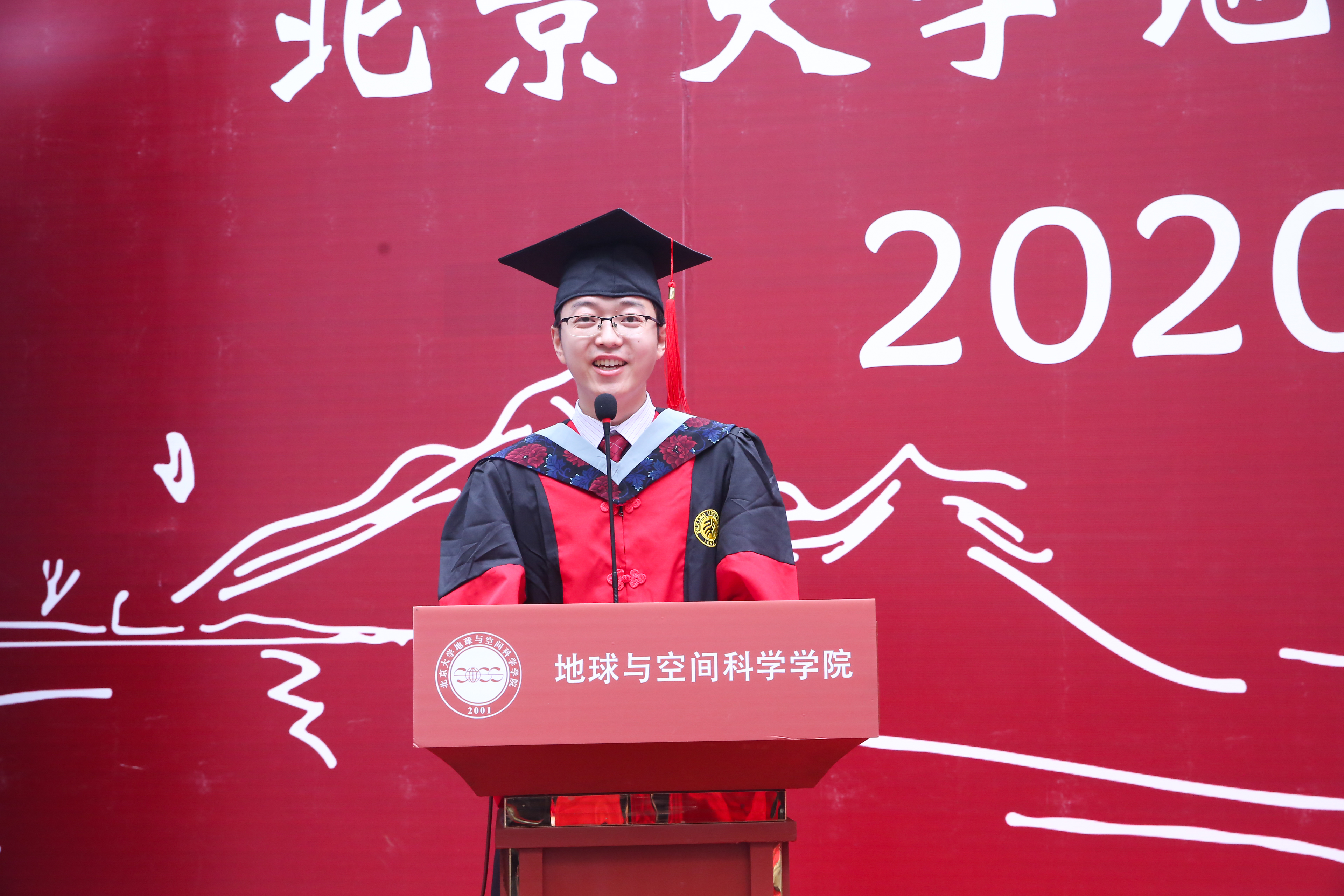 “也许还有遗憾,甚至很多,但我相信共你,没有白活……”,在地空师生《青春大概》的歌声后,优秀毕业生代表伍昕钰带领全体毕业生进行庄严宣誓:“脚踏实地,践行时代责任与使命;仰望星空,承载北大精神与梦想”。
