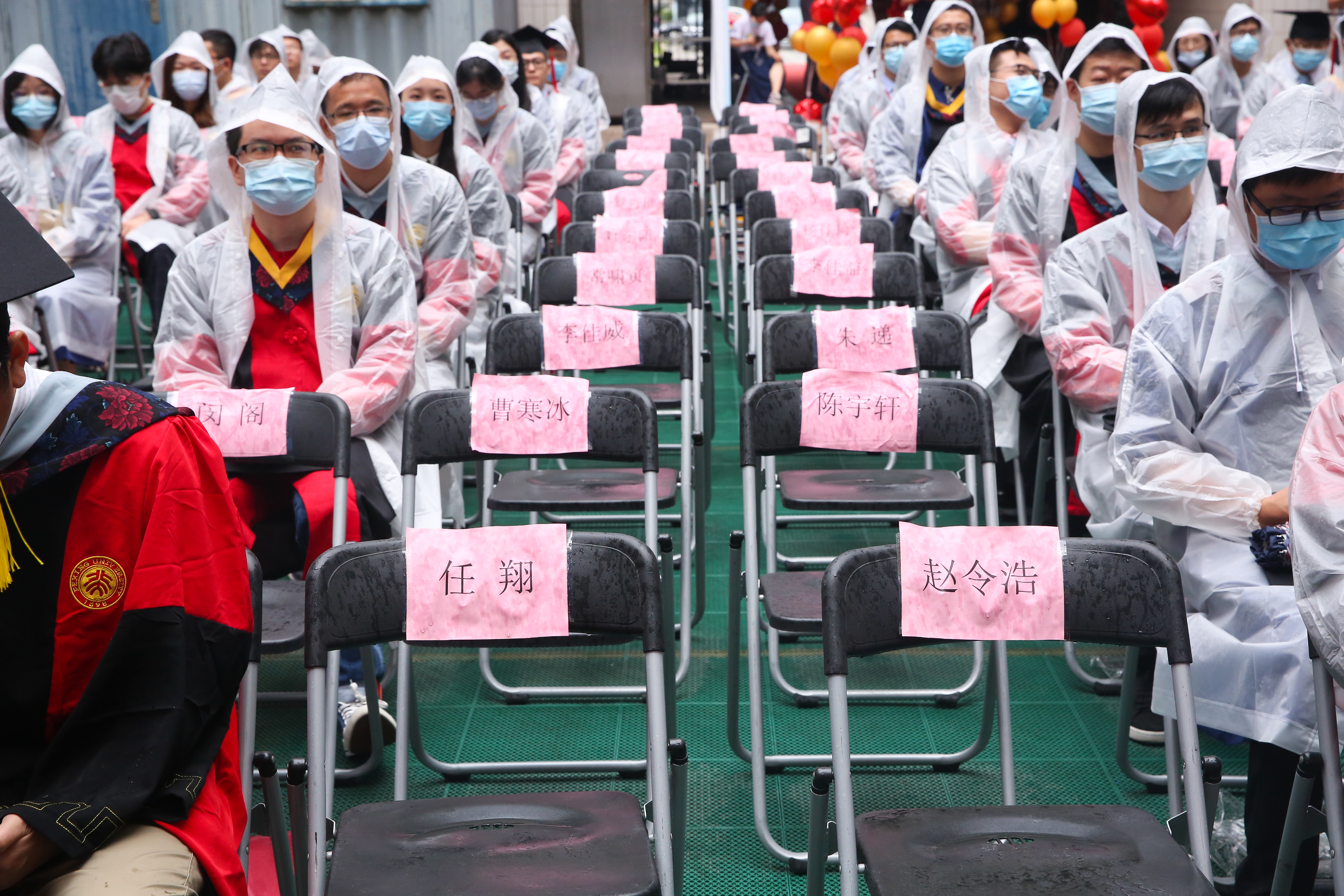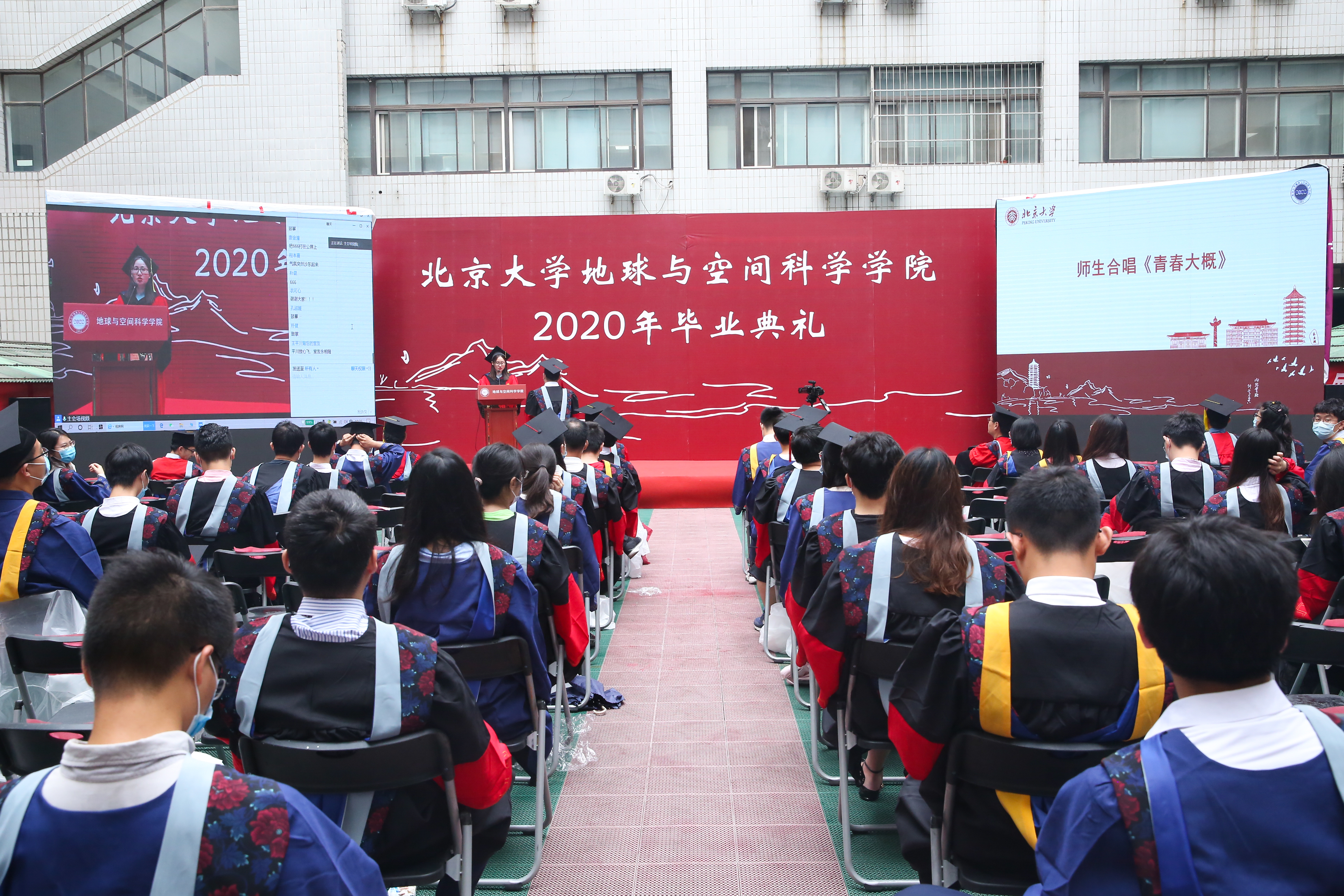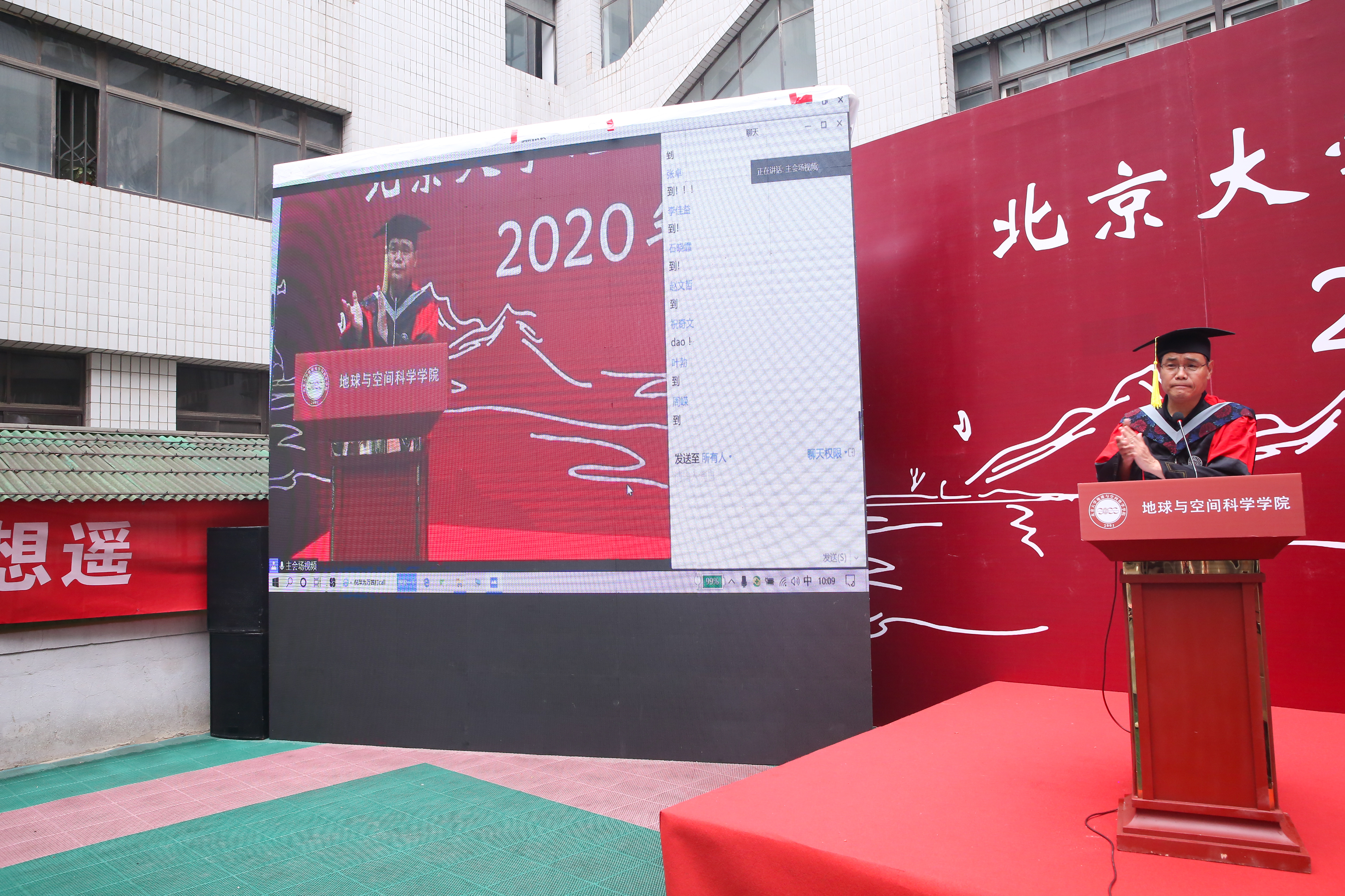 2020年毕业典礼在庄严的国歌声中正式开始。师生共同欣赏了2020届毕业生的燕园生涯回顾视频,新生定向越野、一二·九大合唱、艰苦的野外实习、多彩的班级活动……这一幕幕难忘的场景,是同学们在北大最美的青春记忆。恰逢细雨,同学们感动的泪水与雨水都交织在了一起。