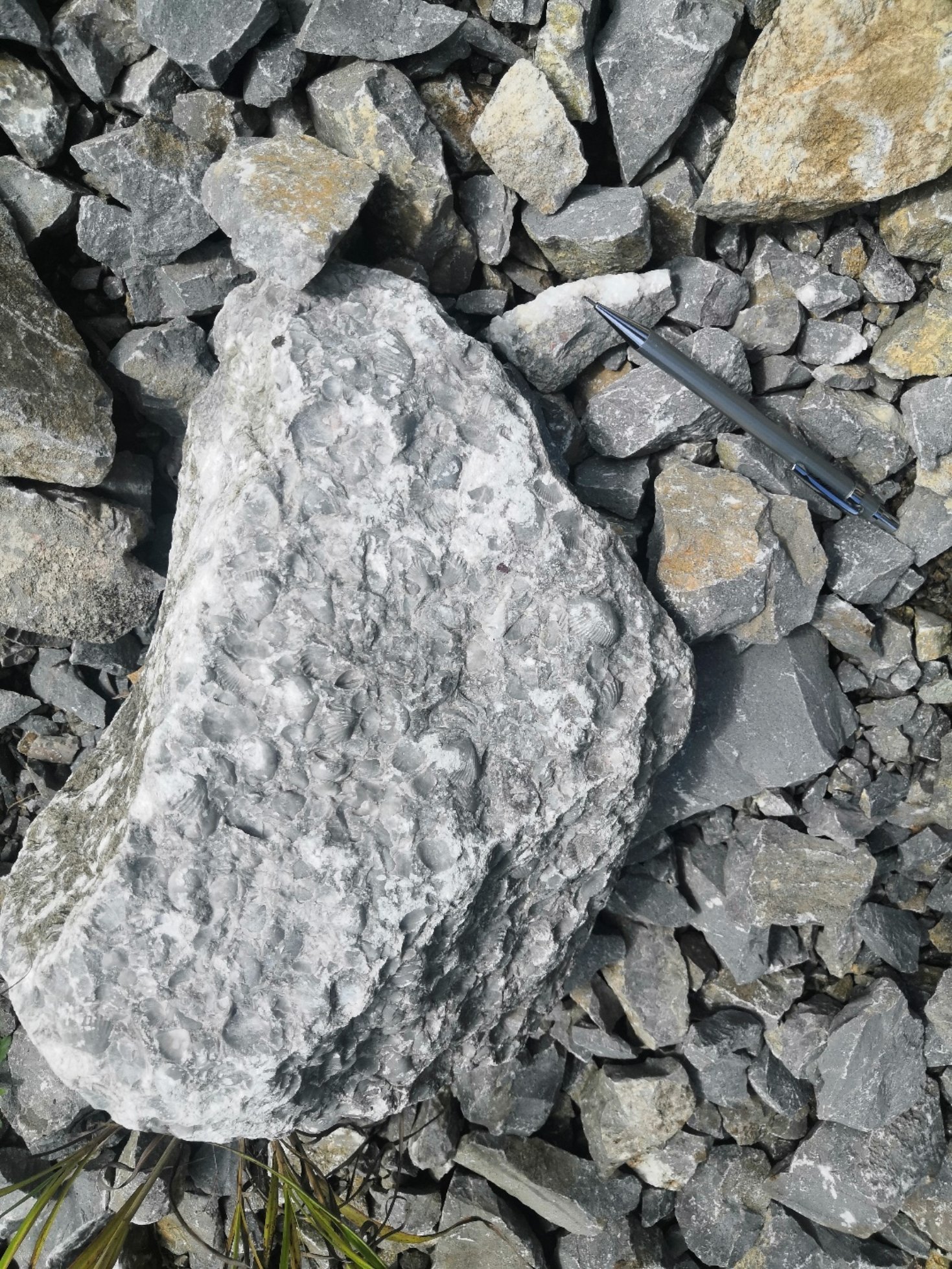8月18-8月19日,沿着前两天考察的地层时代继续前进,考察队的面前是从志留系上高寨田组到石炭系摆佐组的一套地层出露。丰富的各种生物化石——腕足,珊瑚,层孔虫,海量的地质现象——波痕,泥裂,白云岩化,结核,晶洞,着实是让同学们目不暇接。尽管贵州“天无三日晴”,说来就来的冷雨依然浇不灭大家的学习热情:仰观高远天象澄澈如洗,俯探深沉大地细考修衍。