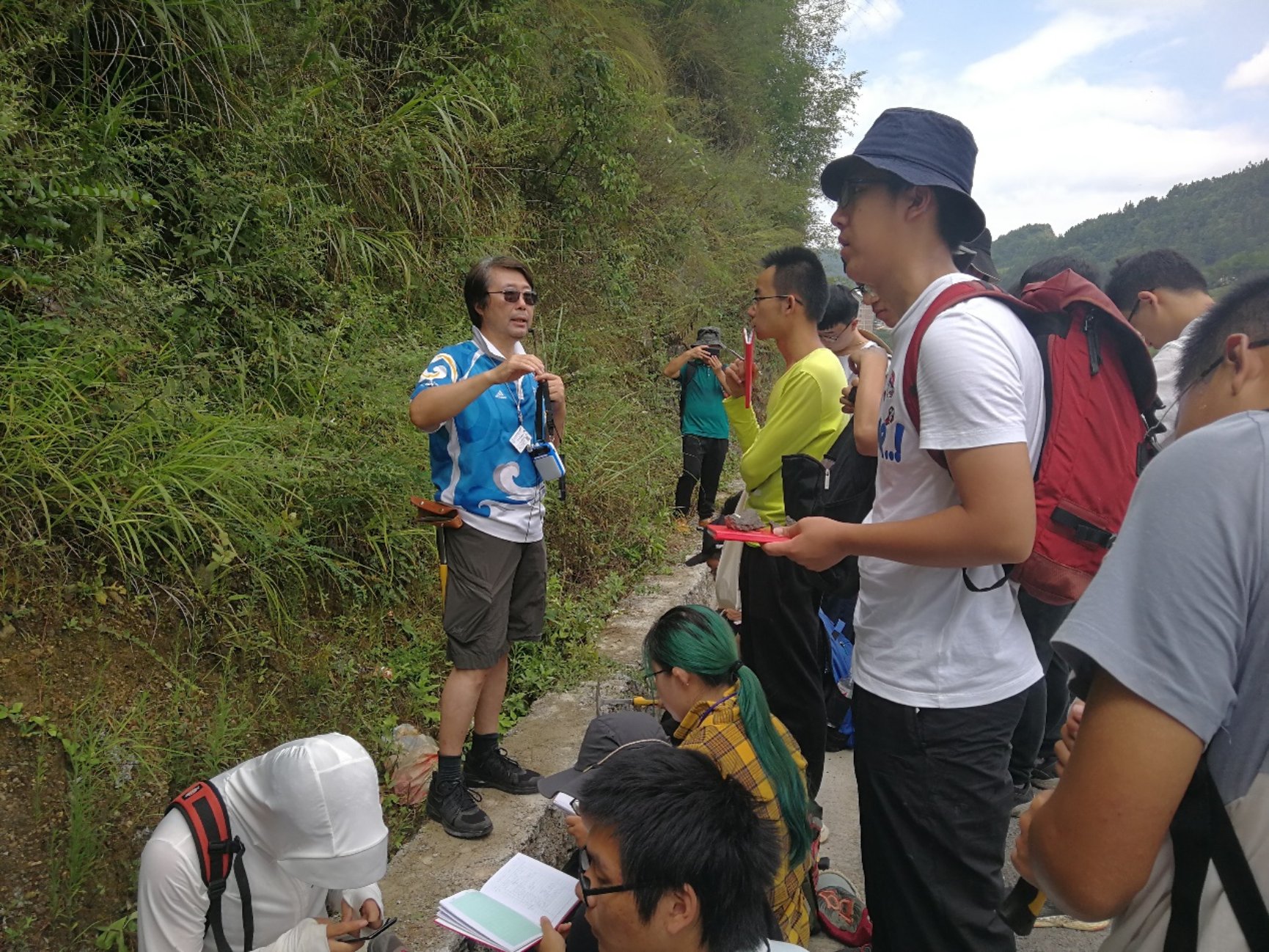 8月25日,在地质考察的尾声,实习队到达独山县,这里的实习内容包括了上泥盆统——下石炭统沉积相变、哲杜斯贝生物礁、D/C界线剖面及其附近的腕足动物群。尽管天气炎热,大家依然热情不减,高山与险路,野草与荆棘都不能阻挡求索的步伐,终于为考察任务画上了一个圆满的句号。