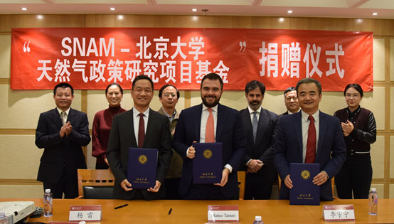 党委书记李培军代表北大对Snam公司给予的捐赠表示感谢。他指出在当前全球能源转型正在深入进行、国际环境变化很大的时期,能源研究院与Snam公司的合作非常有意义,Snam公司在天然气领域尤其是基础设施的运营方面拥有宝贵的知识和经验,双方的合作也将助力中国的天然气行业更好地发展。同时他表示一定会将项目执行好,真正为行业发展起到积极推动作用。随后,能源研究院副院长杨雷介绍了开展相关项目工作的设想,与会人员进行了热烈的座谈。