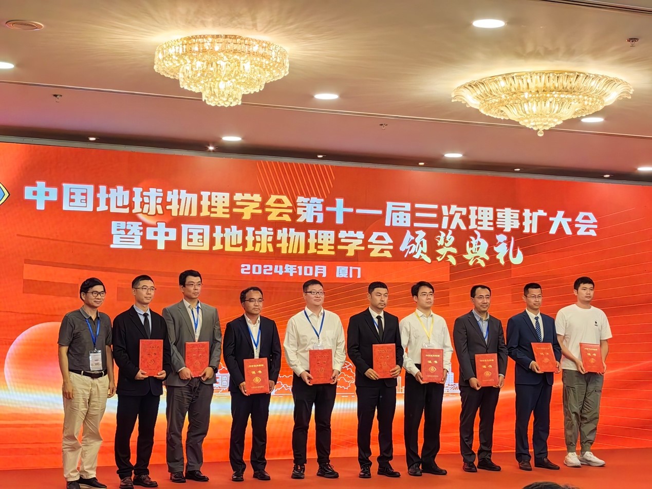 岳汉(左三)获颁2024年中国地球物理学会“傅承义青年科技奖”