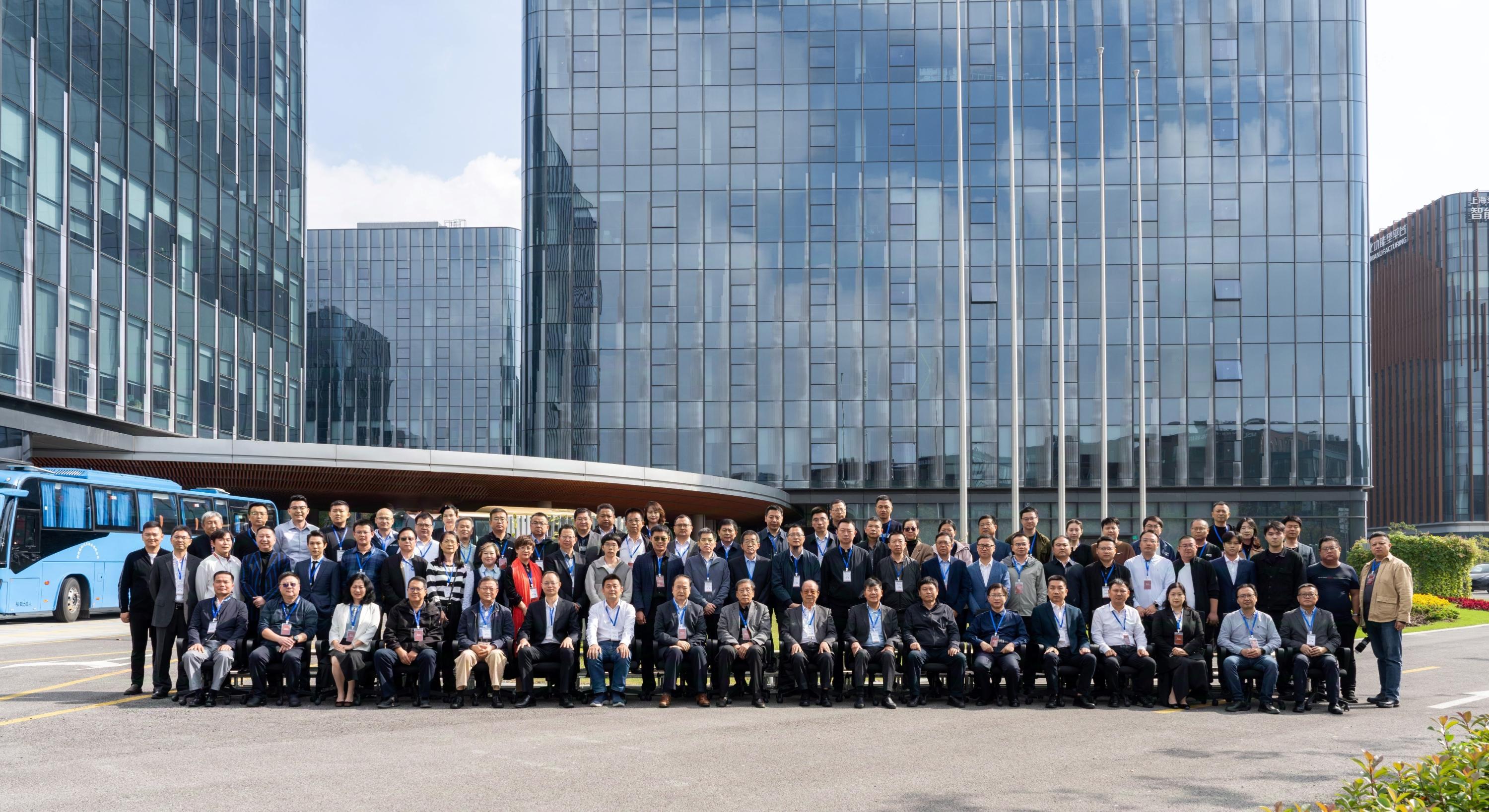 名誉院长、教授潘懋,临港新片区管委会高科处代表出席会议,临港新片区园区和企业代表,北大临港科创中心,行业协会,专家,投资机构及北大校友百余人参加活动。