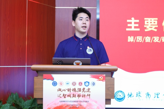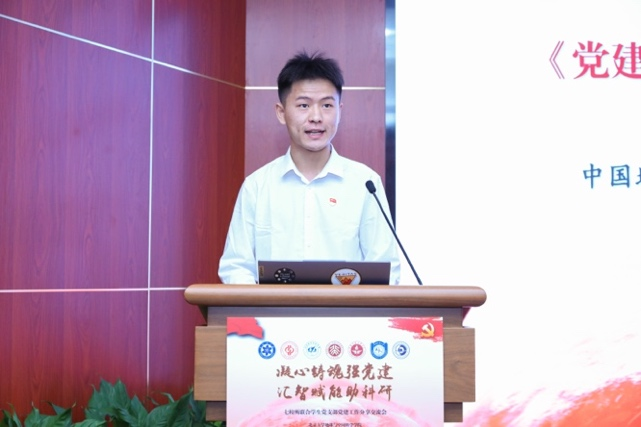 腐漫画 地球物理研究生党支部袁源以《追光不辍强国梦,党旗引领谱华章》为主题,分享了党支部以李四光精神为引领,聚焦“课程思政、科普宣讲、科研攻关、校地合作”开展的一系列党建工作。