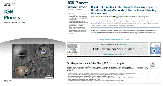 Bojun Jia, Wenzhe Fa, Mingwei Zhang, Kaichang Di, Minggang Xie, Yushan Tai, & Yang Li. (2022). On the provenance of the Chang’E-5 lunar samples.Earth and Planetary Science Letters, 596, doi: 10.1016/j.epsl.2022.117791.