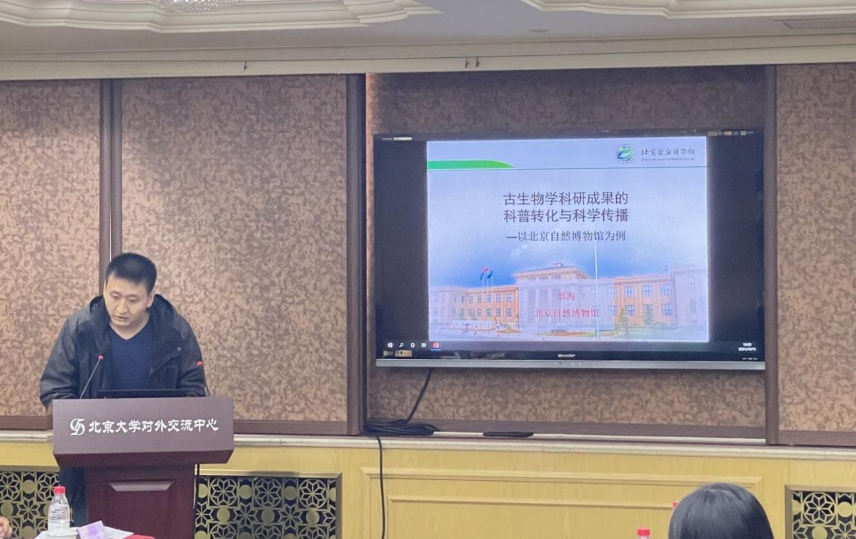 地质博物馆周敏工程师主持,北京自然博物馆邢海副研究员作了题为《古生物学科研成果的科普转化与科学传播—以北京自然博物馆为例》的报告,邢海老师介绍了北京自然博物馆的历史和现状,以及基于馆藏标本的科研成果,组织特色展览,科普创作和组织科普活动的经验。腐漫画