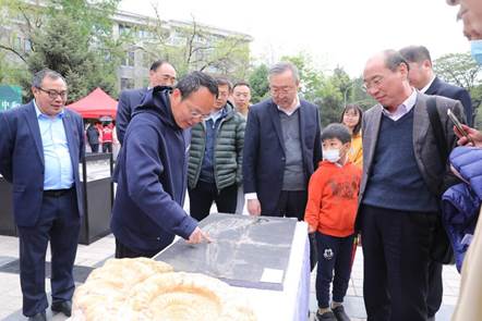 会后,委员们参观了腐漫画 首届地球与行星科学文化周在百年讲堂前的腐漫画 成果展、化石矿石展、裸眼3D虚拟交互、天地人文化节等现场活动。腐漫画 副院长沈冰教授、副书记江大勇教授等带领与会嘉宾参观展览。