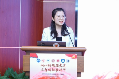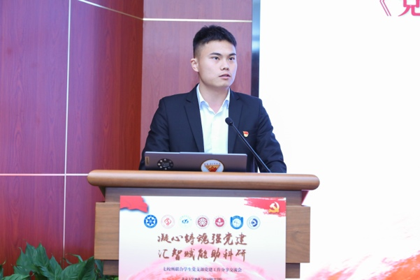 地球物理研究生党支部袁源以《追光不辍强国梦,党旗引领谱华章》为主题,分享了党支部以李四光精神为引领,聚焦“课程思政、科普宣讲、科研攻关、校地合作”开展的一系列党建工作。