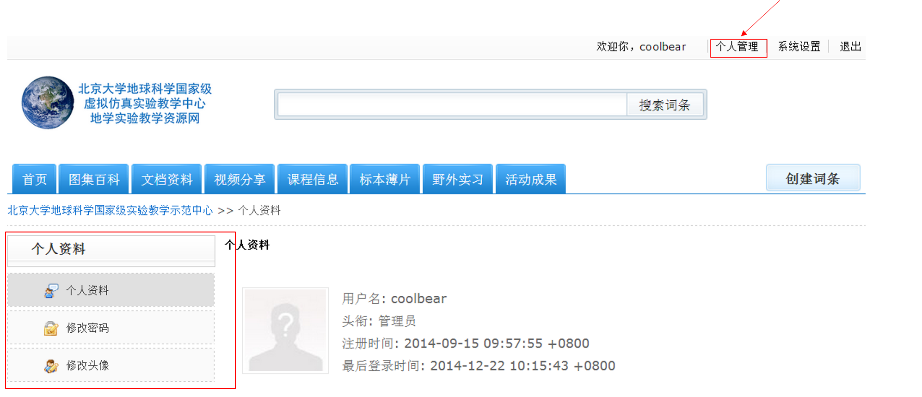 个人管理主要包括个人资料管理、修改密码、修改图像等功能。登陆成功后,在腐漫画右上角点击“个人管理”,即可进入个人资料页面。