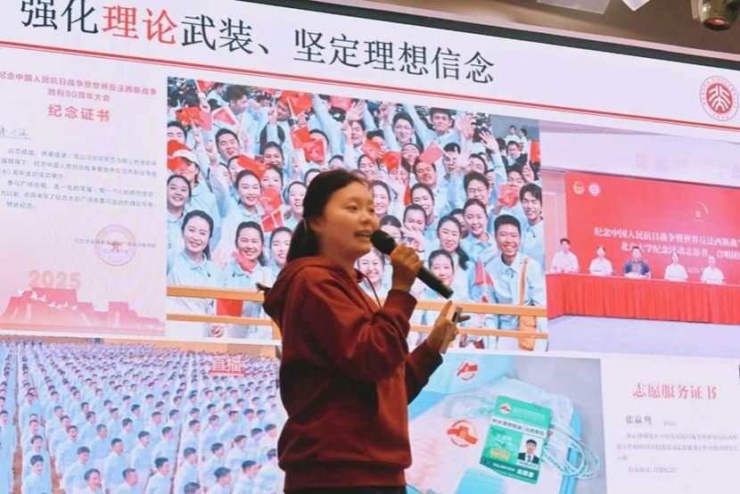 史前生命与环境研究生党支部书记潘月涵以“九三风骨铸校魂,家国情怀兴邦梦”为题,为附小学生带来了一场融思想深度与情感温度于一体的思政宣讲。她通过轻松的互动提问活跃课堂氛围,并播放了自己在附小求学时期的影像资料,瞬间拉近了与孩子们的距离。