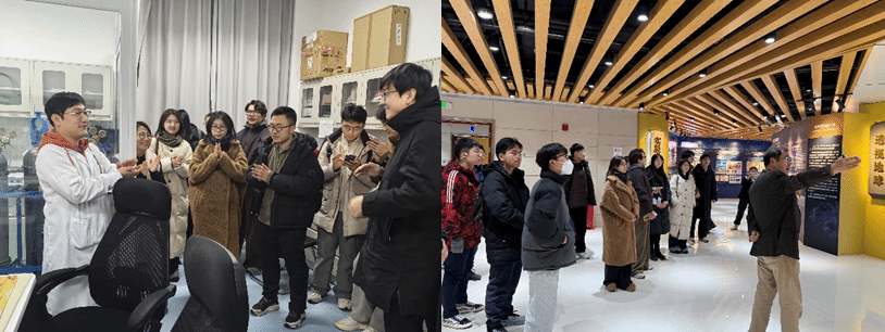 交流会后,师生们走进深部探测成果展、矿物微区物质组分与结构实验室及岩石组构分析仪实验室,开展实地研学。在实验室中,师生们近距离观摩高精度设备,围绕矿物分析、岩石组构研究等专业问题与地科院科研人员深度互动;在深地探测成果展上,吕庆田详细讲解了实验室在深地科学理论、战略矿产资源研究等领域的重大突破,让师生对将专业技术服务于“向地球深部进军”的国家战略工作有了更直观、深刻的认知。