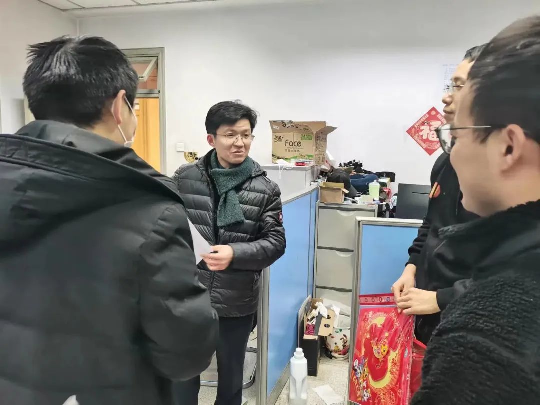 在研究生办公室,学院领导关切地询问同学们寒假在校学习科研情况,鼓励大家合理规划时间、劳逸结合;希望同学们保持积极健康、乐观向上的生活态度,珍惜韶华,完成自己的新年目标;祝福同学们在新的一年里学业进步、身体健康、万事如意。