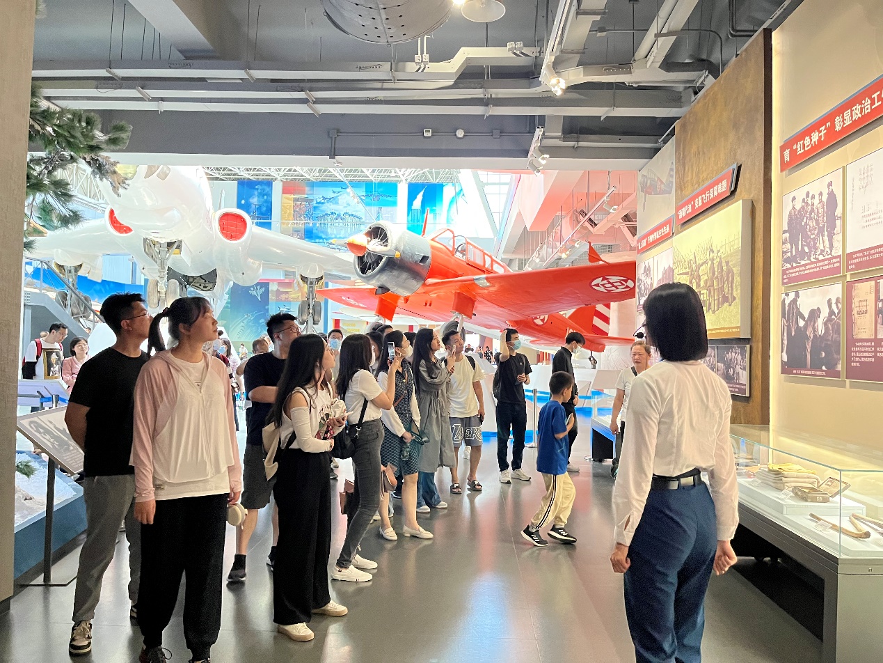 同学们和农信互联的工作人员们共同参观了中国航空博物馆,感受强国强军力量,缅怀奋斗征程。中国航空博物馆是中国第一座对外开放的大型航空博物馆,是中国唯一、亚洲最大、世界前五的航空专业博物馆,是中国国家、军队和国防科技工业的“窗口”,是人民空军英雄气概的精神和文化之魂坛。一寸山河一寸血,一抔热土一抔魂。博物馆内,一台台飞行器承载着历史的印记、见证祖国一步步走向繁荣富强。此情此景,在同学们的心中激荡起一股浓烈的爱国之情。