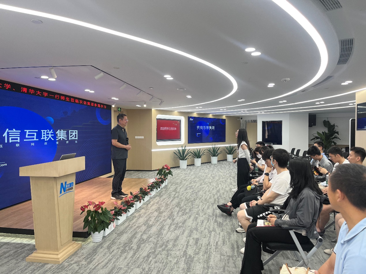 同学们首先参观了北京农信互联科技集团有限公司,与农信互联公司的工作人员们开展了深度交流。北京农信互联科技集团有限公司是一家专注农牧8年的农业互联网高科技企业,以“用互联网改变农业”为使命,致力于构建最有影响力的农业数智生态平台,为当代农牧企业提供数字化服务,推动中国农业数字化转型升级,通过数字蓄能助力乡村振兴。经过此次参观,同学们对新时代农业发展与智慧农业有了全新的认识。