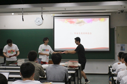 之后,党支部内开展毕业党员欢送活动,在同学们的掌声中,每一位毕业生党员都拿到了写有自己名字的政治生日贺卡和支部准备的毕业礼物,毕业生们在台前合影留念,用照片记录下这一时刻,也留下自己在党支部的美好回忆。