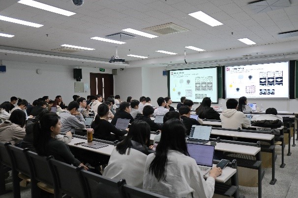 同学们在提问与交流环节中踊跃发言,针对报告内容进行了深入的讨论。郭庆华教授耐心地一一解答了同学们的问题。他指出了激光雷达技术在提高植被制图精确度中的关键作用,解释了人工智能如何优化数据分析和处理流程以增强生态监测的效率和准确性。郭庆华教授认为,虽然人工智能在多个领域中的应用已经取得了显著成果,但如何进一步提升人工智能模型的泛化能力仍是一个值得深入研究的问题。他强调,同学们要勇于创新、敢于实践,更要胸怀责任感和使命感、志存高远,通过多学科交叉融合,继续探索新的研究方法和技术手段,为实现科学目标和社会价值而不懈奋斗。