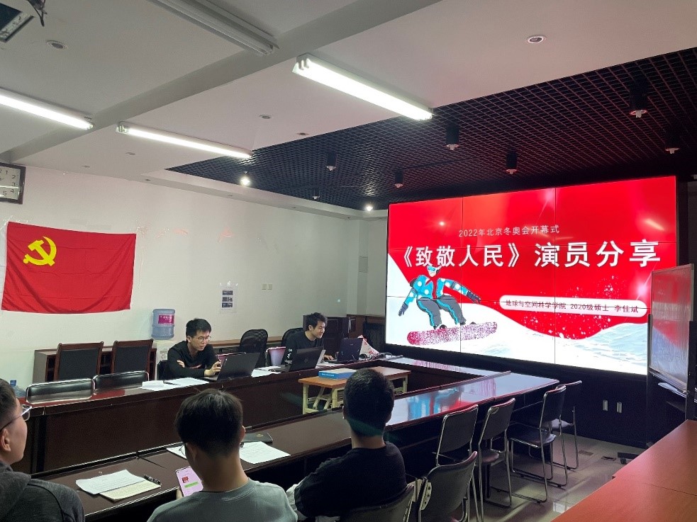2022年,是冬奥年,同时也是党的二十大召开的关键时间节点,为持续巩固深化党史学习教育成果,弘扬伟大建党精神,充分发挥党支部战斗堡垒作用,3月28日,遥感博士生党支部在遥感楼517召开冬奥经历分享和两会精神学习的主题活动,邀请了冬奥志愿者武晓环、郭鹏和冬奥会开幕式演员李佳斌进行分享,并由遥感博士生党支部副书记王子安就两会精神进行分享。