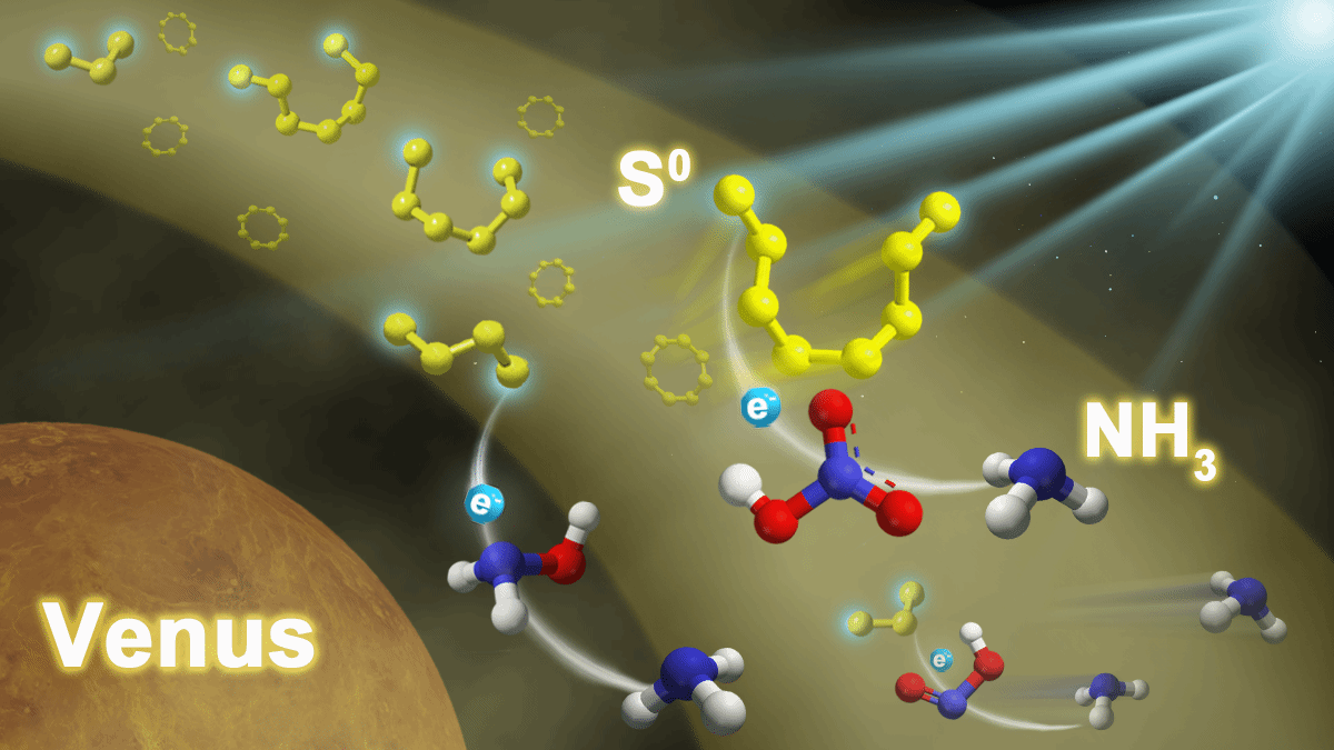 图1. 光活性单质硫同素异形体驱动金星大气中氨的持续合成示意图