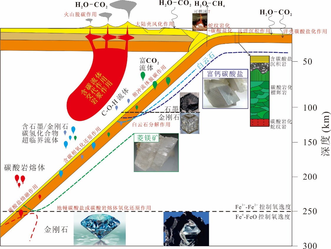 图1.俯冲带深部碳循环示意图
