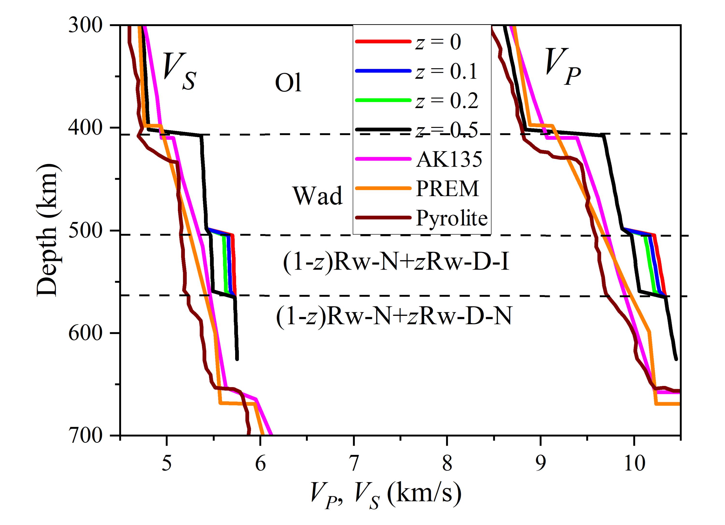图6 不同反林伍德石含量下的地震波速模型